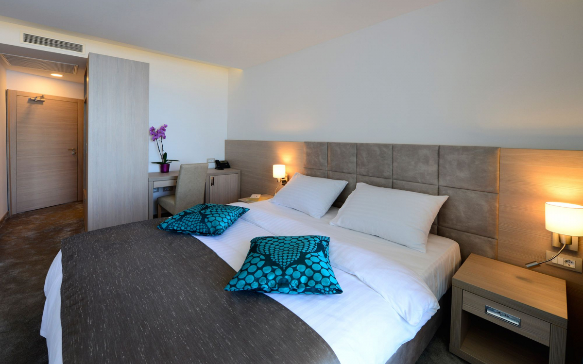 Opis: hotela sta med seboj povezana, recepcija, restavracija, a la carte restavracija, kazino, internetni kotiček, brezplačen brezžični internet v hotelski avli, trafika, notranji bazen, wellnes center, whirpolli, savna, terasa za sončenje, parkirišče.