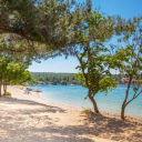 Plaža: 150 m, skalnata, betonirana, bližina prodnate plaže, možnost najema senčnikov in ležalnikov do zasedbe mest.