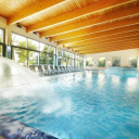 Bazeni: zunanji olimpijski bazen z morsko vodo, notranji bazen z ogrevano morsko vodo in vodnimi masažami ter dva notranja masažna bazena (v wellness centru).