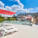 Plaža: 300 m stran od hotela, travnata, prodnata, tlakovana in skalnata plaža, s tuši, brezplačnimi ležalniki (omejeno število)