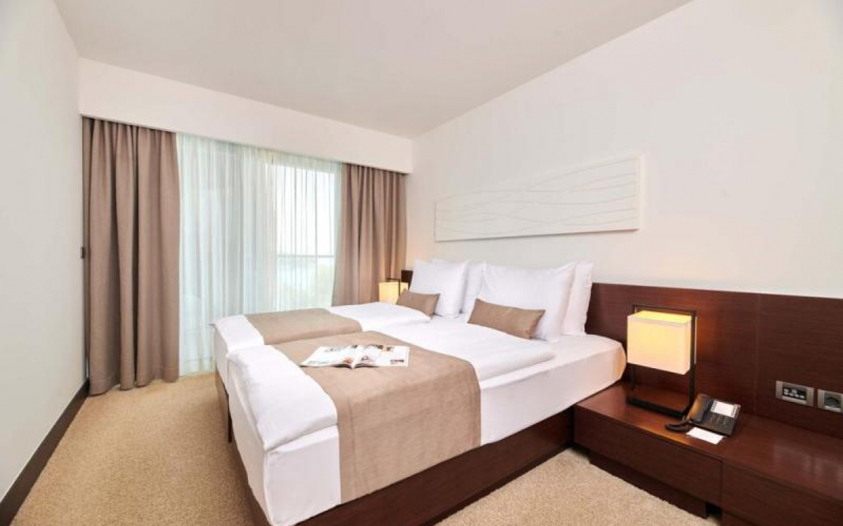 Nastanitev: v vseh sobah klimatska naprava, SAT TV, sef, tekstilna talna obloga, sef, kopalnica (sušilec za lase), mini bar, balkon. Možnost otroške posteljice za doplačilo (po predhodni potrditvi). V vsaki sobi copati in kopalni plašč.