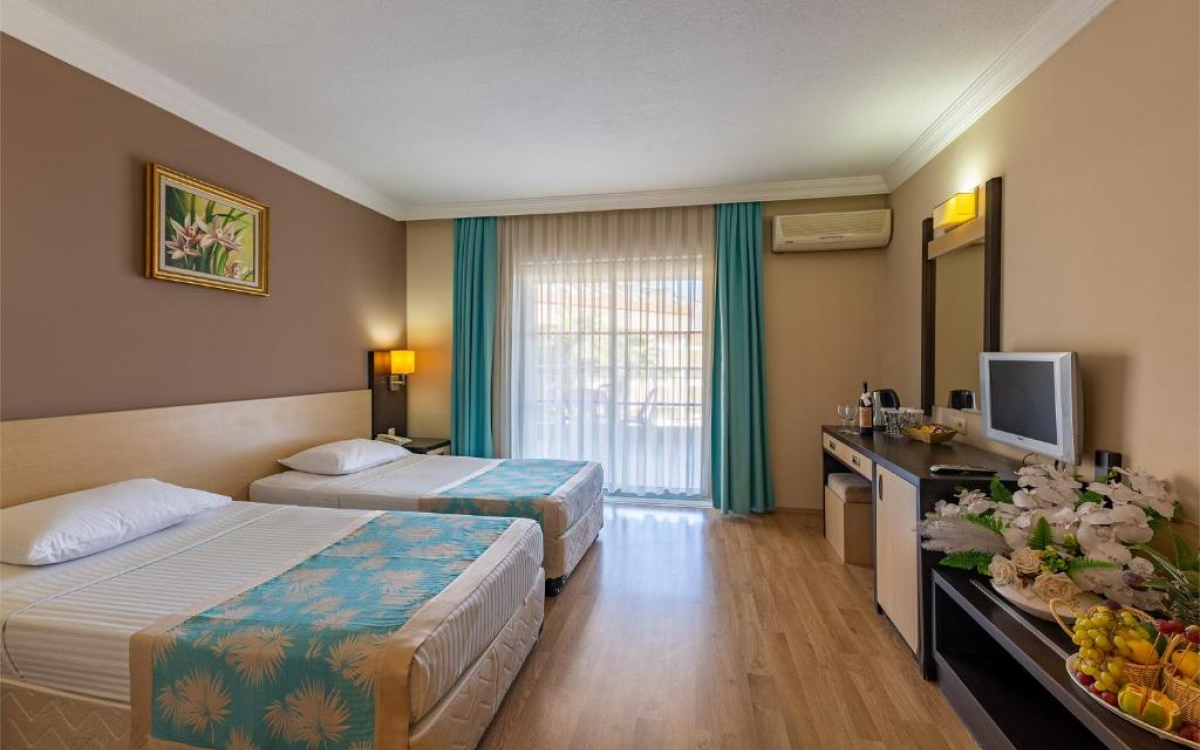 Storitev: ALL INCLUSIVE (samopostrežni zajtrk od 7.30 do 10.00 • pozni zajtrk od 10.00 do 11.00 • samopostrežno kosilo od 12.30 do 14.00 • samopostrežno večerjo od 19.30 do 21.30 • prigrizke v baru s prigrizki od 15.00 do 16.30 • čaj, kava, pecivo od 17.00 do 18.00 • sladoled od 16.30 do 17.00 • lokalne alkoholne in brezalkoholne pijače v all inclusive barih od 10.00 do 23.00 • uporaba bazenov • ležalniki in senčniki ob bazenu in na plaži do zasedbe mest • brezplačen brezžični internet v recepciji