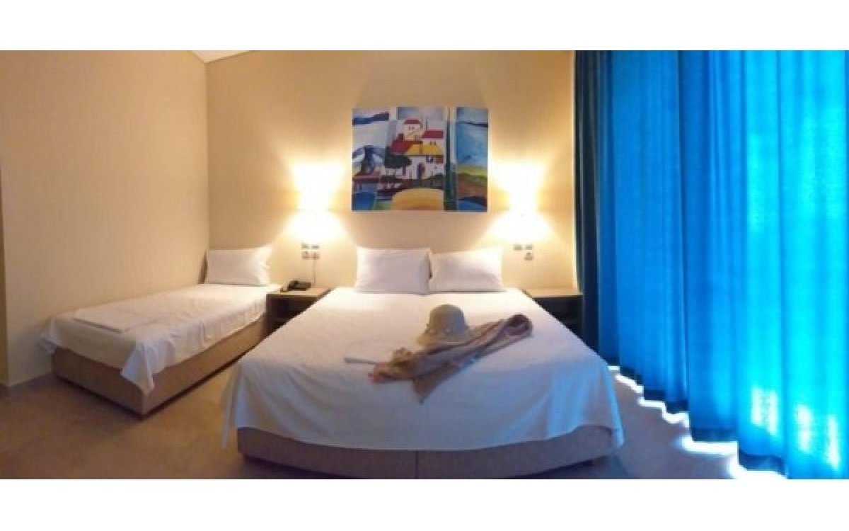 Plaža: hotel je od peščeno-prodnate plaže Kounopetra oddaljen 300 metrov. Možnost koriščenja senčnikov in ležalnikov do zasedbe mest in ob doplačilu.